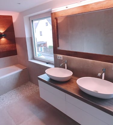 Unser Unternehmen bietet ein umfangreiches Angebot an Leistungen an, das von der Verlegung von Fliesen und Natursteinen bis hin zur Planung und Ausführung von Badezimmerrenovierungen reicht. Dabei haben wir uns besonders auf den Bau futuristischer Badezimmer spezialisiert, bei denen wir stets die Wünsche unserer Kunden im Blick behalten und diese in das Projekt mit einbeziehen. Wir arbeiten eng mit unseren Kunden zusammen, um sicherzustellen, dass jedes Bad einzigartig und auf Ihre Bedürfnisse und Vorlieben zugeschnitten ist. Unser Ziel ist es, Badezimmer zu schaffen, die nicht nur funktional sind, sondern auch modern, stilvoll und inspirierend wirken.